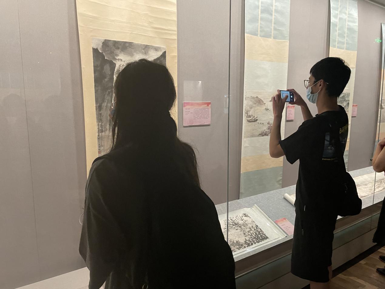 仪式后,小队进入南京博物院,院内人山人海,彰显了人们对历史的喜爱。小队依次参观了南京博物院的历史馆、特展馆、数字馆、艺术馆、民国馆、非遗馆。其中最令我们印象深刻的是傅抱石红色绘画艺术展。为了庆祝中国共产党建党成立100周年,南京博物院举行了傅抱石红色绘画特展。傅抱石先生在长期绘画实践中,他清醒地意识到“笔墨当随时代”,他深深感悟到中国共产党领导的新民主主义革命胜利的来之不易,将胜利的喜悦画入画纸中。队员们仔细聆听志愿者讲解,详细了解了相关历史与红色故事。