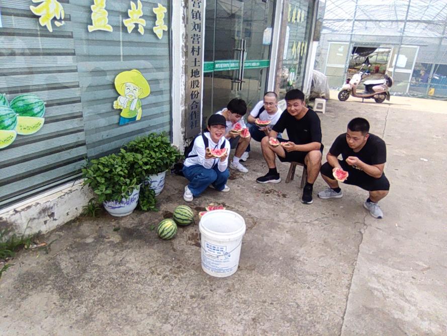 最后,当地负责人带领团队参观大棚内部,为我们讲解西瓜种植灌溉等技术。魏营村民还请队员们品尝当地大西瓜,展现了魏营人热情好客的风尚。通过此次社会实践活动,队员们纷纷表示只有走进农村,才能深刻了解国家的乡村振兴战略,在希望的田野上播种未来,在农村的广阔天地大有作为。