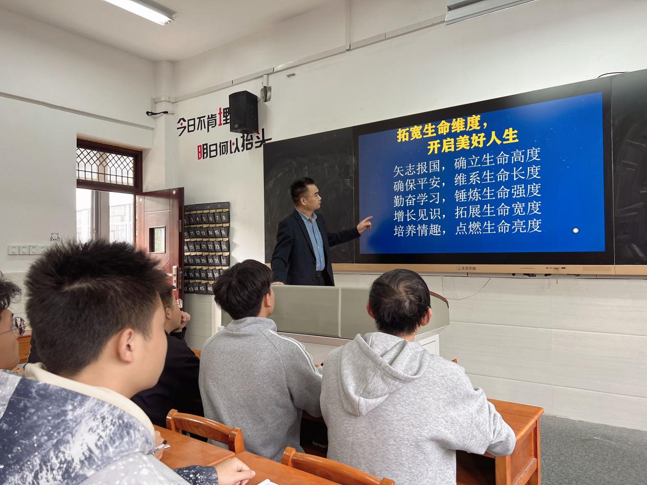 首先,严校助关心了学生在校生活的情况,并从五个方面给同学们进行了指导:1、矢志报国,确立生命高度;2、确保平安,维系生命长度;3、勤奋学习,锤炼生命强度;4、增长见识,拓展生命宽度;5、培养情趣,点燃生命亮度。