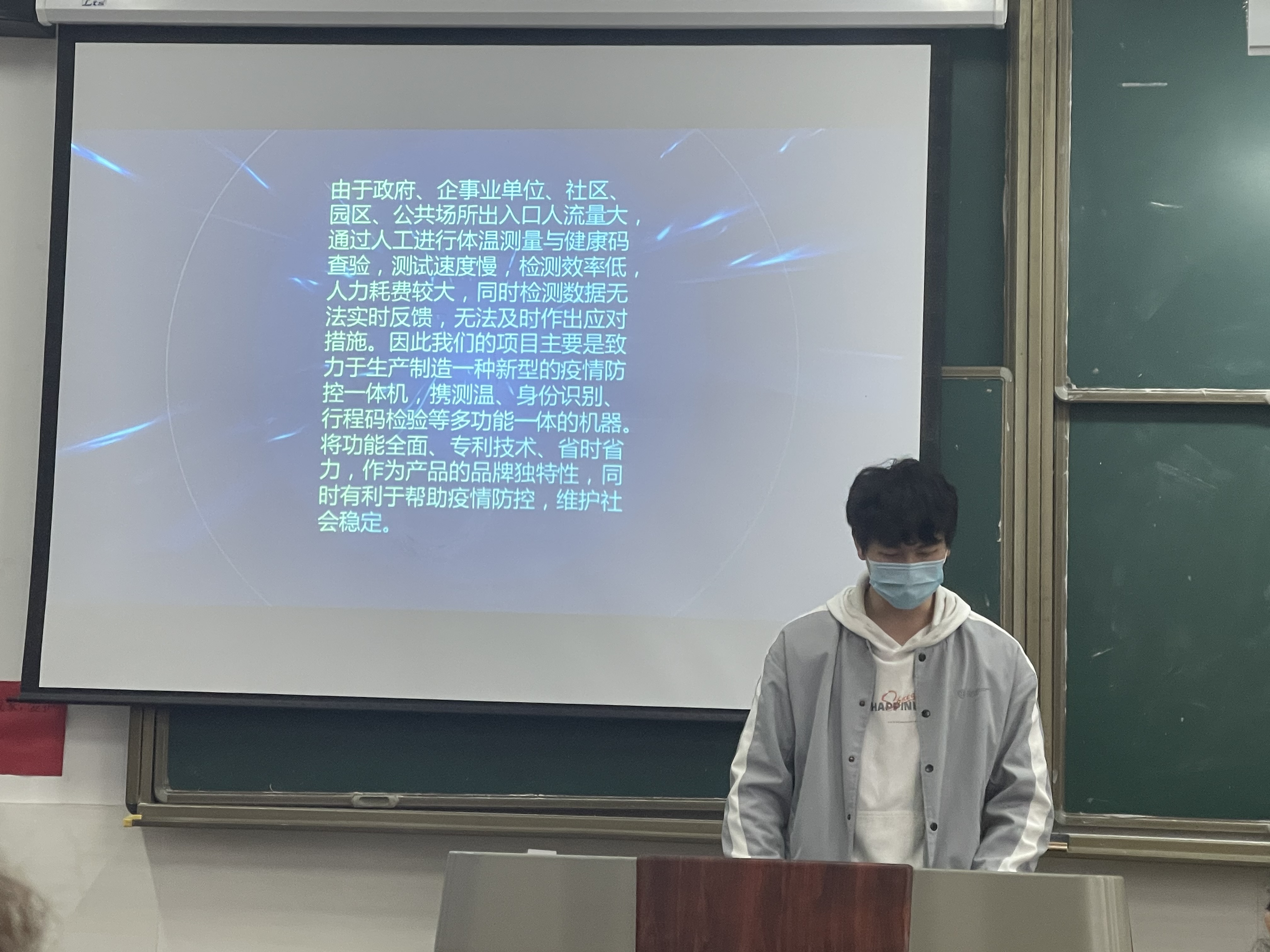 本次初赛共有21个参赛队,分为两组在C305、C306两个教室进行,每个参赛队只有1名同学到场参加比赛。同学们都进行了精心的准备,比赛现场激烈,通过现场演讲和PPT展示,向各位评委和全体同学充分介绍了自己项目的创新和优势,各位评委也对各个项目进行了提问和精心的点评。