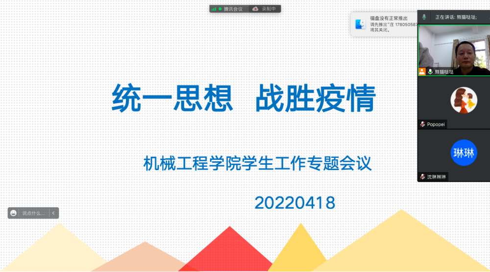 2022年4月18日下午五点8858cc永利官网在C206召开疫情防控学工专题会,会议采用线上线下的形式,全体学工人员与会,党总支副书记兼副院长王健主持。