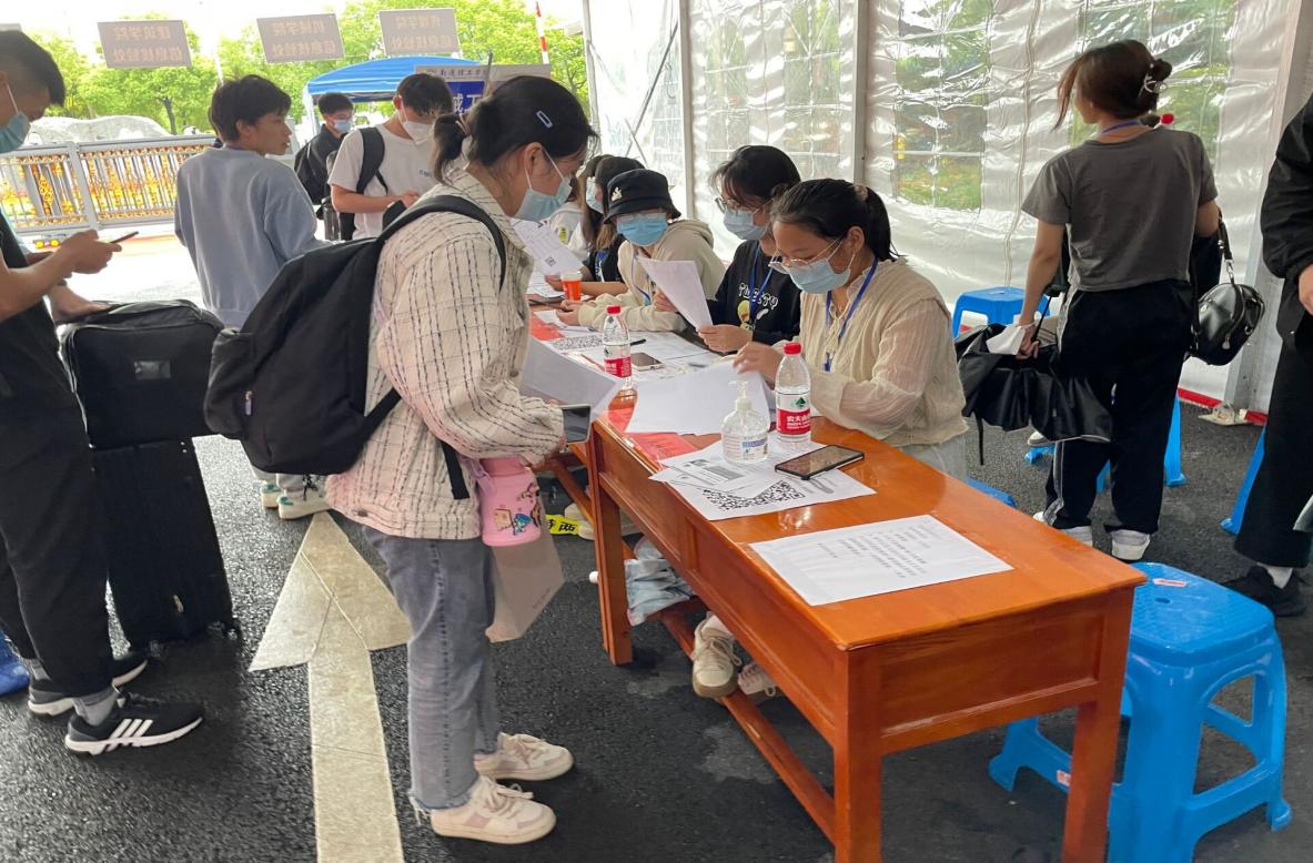 为了新生顺利入学,学校和学院做了认真的准备,安排了校内和车站机场迎新志愿者,搭建了防雨帐篷,租用了校内接送车。新生积极配合做好进校疫情防控相关要求后,在志愿者的带领下,完成报到手续,随后登上校内接送车或者步行前往宿舍楼,整个过程秩序井然。对于夜间入校和晚到的学生,辅导员都一一进行联系确认,确保学子平安到校。