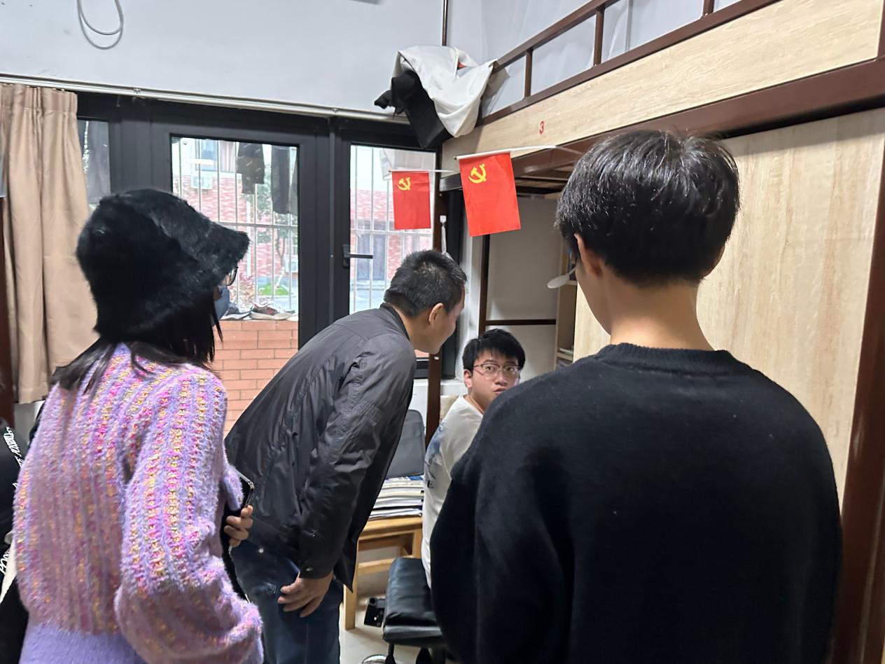 会议结束后,王健带领全体在校辅导员来到学生宿舍,了解学生在疫情封校期间的学习生活情况,鼓励同学们营造好安全、卫生、整洁、文明的宿舍环境,在宿舍要劳逸结合,养成良好学习习惯。