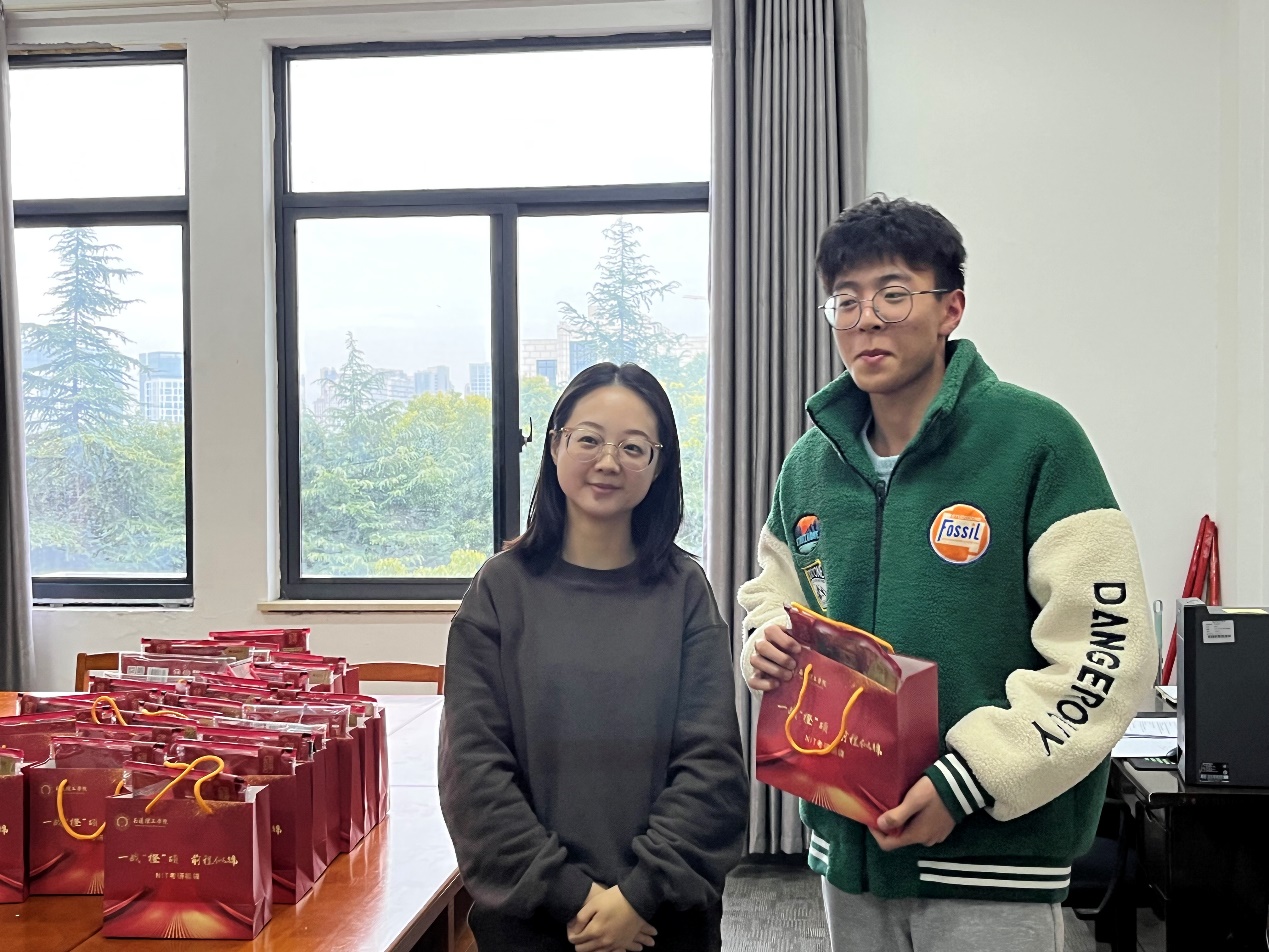 在C309进行了考研慰问品的集中发放,王健希望同学们弘扬优良学风传统,充满必胜信心,把握好考前的宝贵时间合理安排复习,力争考出满意成绩。随后,大家还到考研自习室看望了部分考生,给予关怀与鼓励。