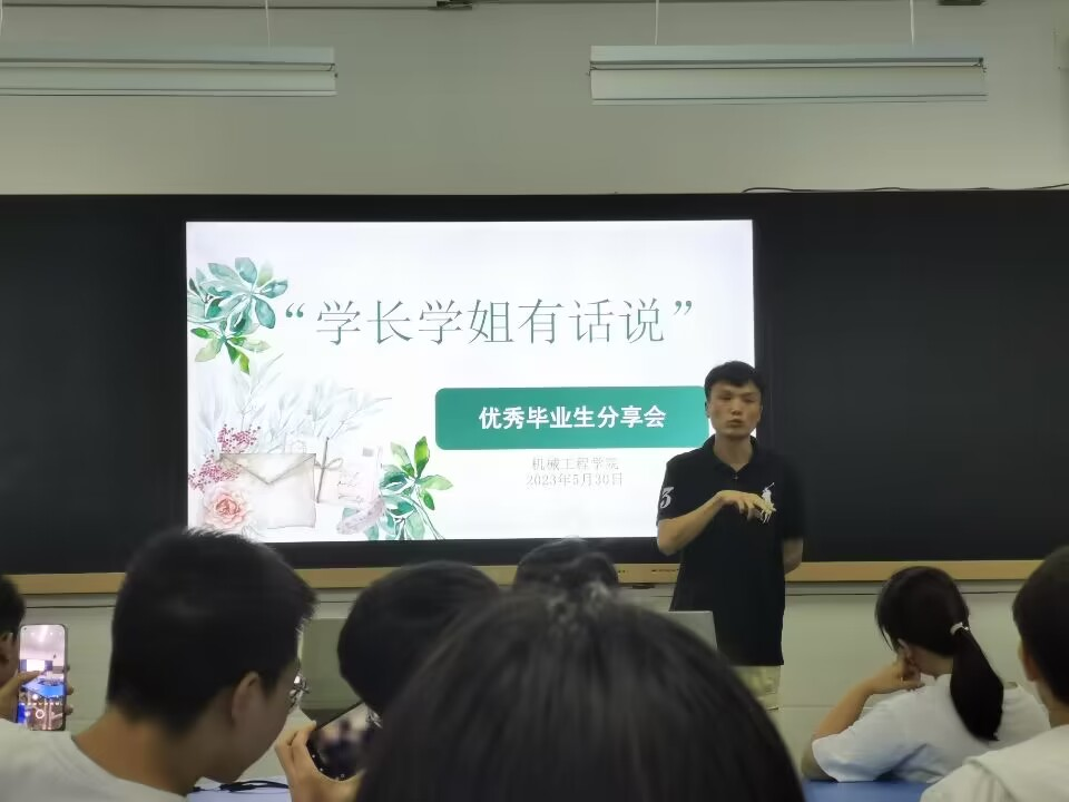 5月30日,8858cc永利官网组织“学长学姐有话说”优秀毕业生分享会,学院邀请到6位学长学姐分享在求职和考研方面的经验,近50名同学参加了此次活动。